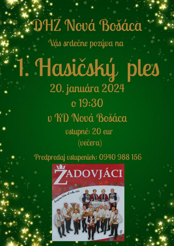 Vás pozýva na 1. Hasičský ples dňa 20. januára 2024 o 19,30 hod. v KD Nová Bošáca.