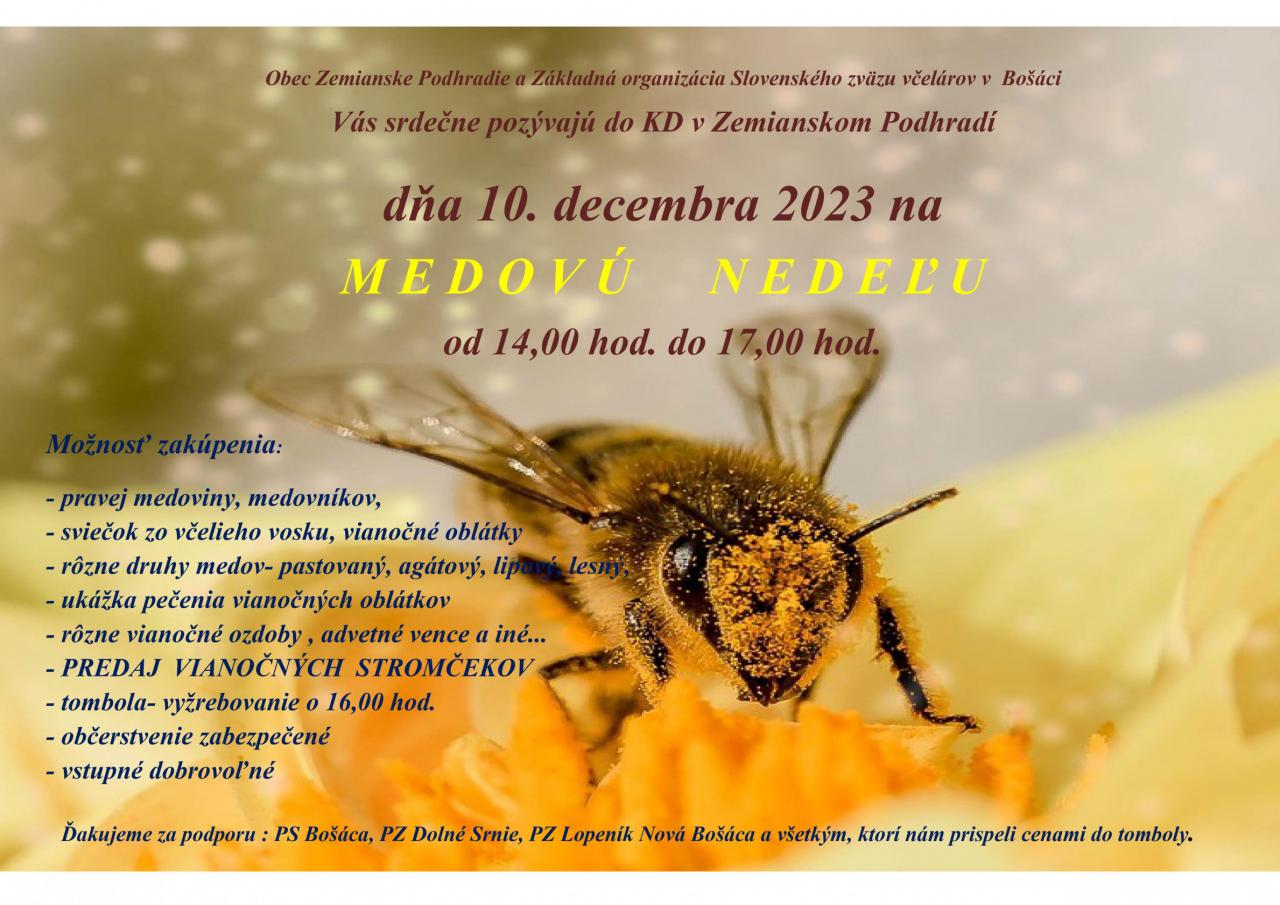 Srdečne Vás pozývame na už tradičnú MEDOVÚ NEDEĽU do KD v Zemianskom Podhradí...