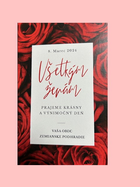 Starosta a poslanci obecného zastupiteľstva obce Zemianske Podhradie želajú všetkým ženám krásne prežitie sviatku MDŽ, aby ste boli zdravé, krásne, šťastné, vždy usmiate a milované Vašimi blízkymi.