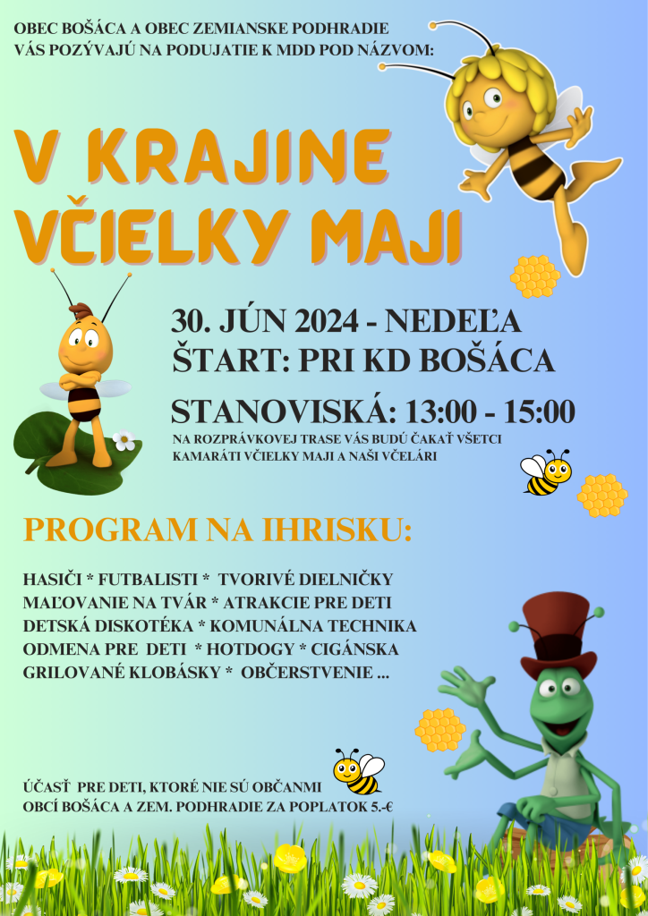 Pozývame všetky deti, rodičov, starých rodičov na spoločné podujatie pri príležitosti sviatku MDD....